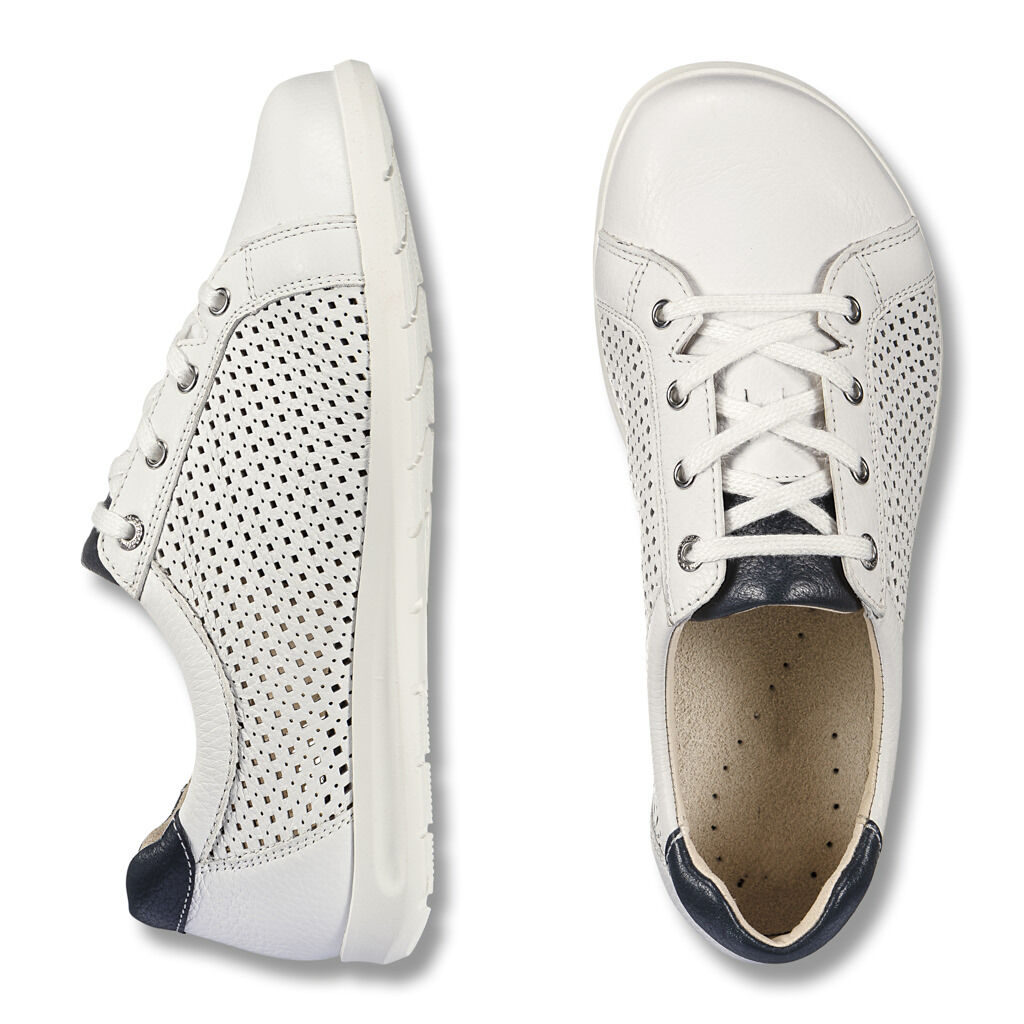 Oblíbený letní model pro silnější chodidla: šněrovací polobotky v derby střihu z hedvábně měkké jelení usně, s perforovanými boky pro extra svěžest, kompletně podšité jemnou, stabilizující koženou podšívkou. Otevřené derby šněrování s malým zářezem pro ještě pohodlnější obouvání. Měkce polstrované okraje a jazyk. Lehoučká, komfortní široká podrážka s vyměnitelnou stélkou.