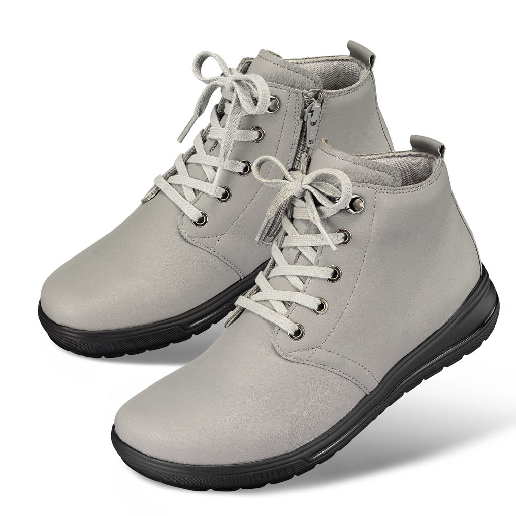 Dokonale pohodlná kotníková obuv z udržitelné usně v té nejlepší kvalitě s top výbavou. Praktická kombinace derby šněrování a zipu pro snadné obouvání. Měkce polstrované okraje, podšívka regulující klima uvnitř boty. Odpružená podrážka CitySneaker s korkovou stélkou, kterou lze vyměnit za vlastní vložky.