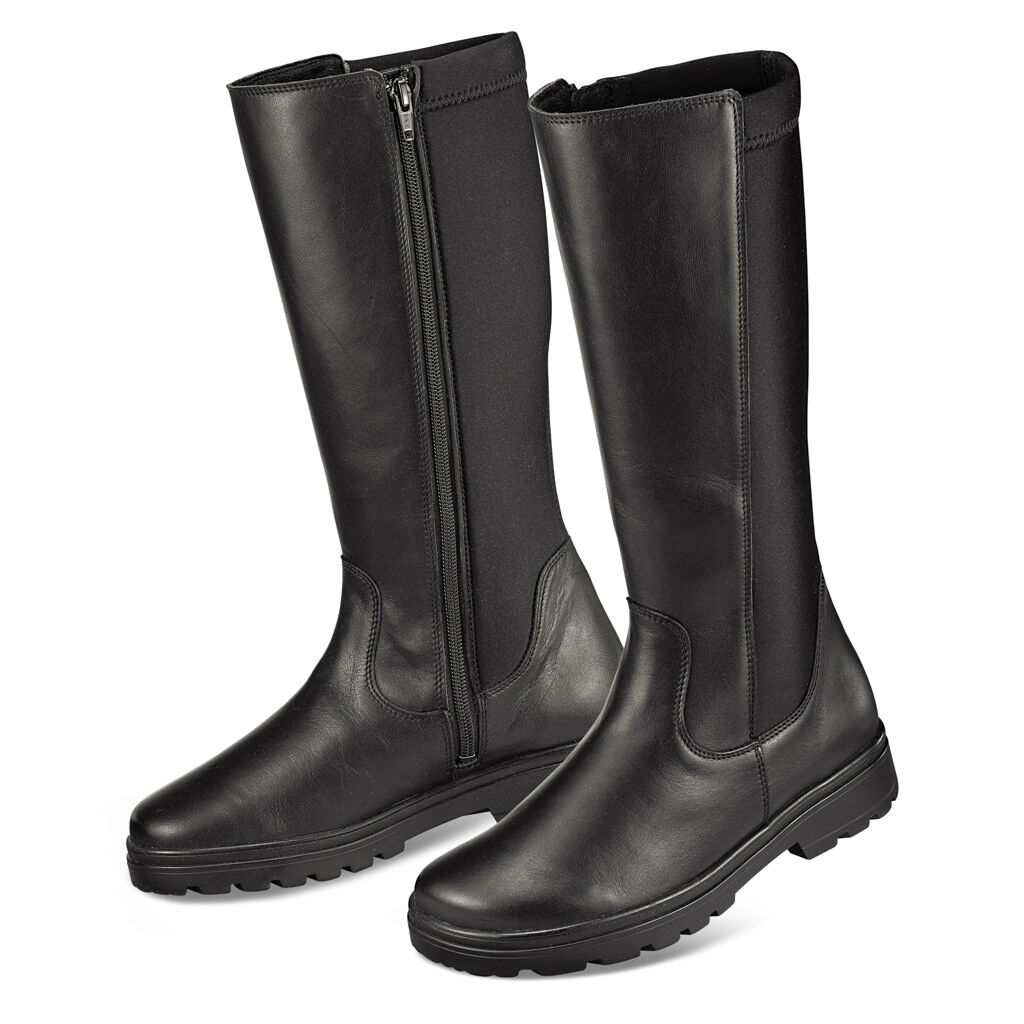 Ať k sukni nebo ke kalhotám - tyto trendové zimní kozačky jsou vždy tou správnou volbou! S měkkou elastickou zónou na lýtku, praktickým zipem na vnitřní straně pro snadné obouvání a útulně hřejivou podšívkou. Protiskluzová podrážka s hrubým přilnavým profilem a vyměnitelnou stélkou.