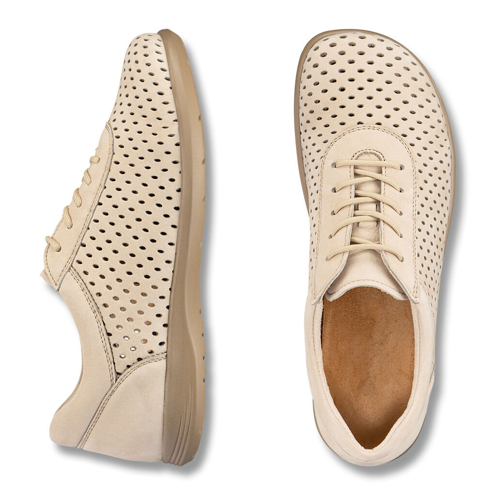 Je důležité, aby obuv na patě a nártu dobře seděla a aby měly prsty současně dostatek prostoru. Při obouvání zatlačte chodidlo pevně zpět do paty, poté zašněrujte nebo zapněte zip popř. pásek na suchý zip. Jen tak bude obuv jistě sedět na patě a na nártu a Vaše prsty budou mít dostatek prostoru pro přirozený pohyb jako na boso i pro zdravé odvalení.