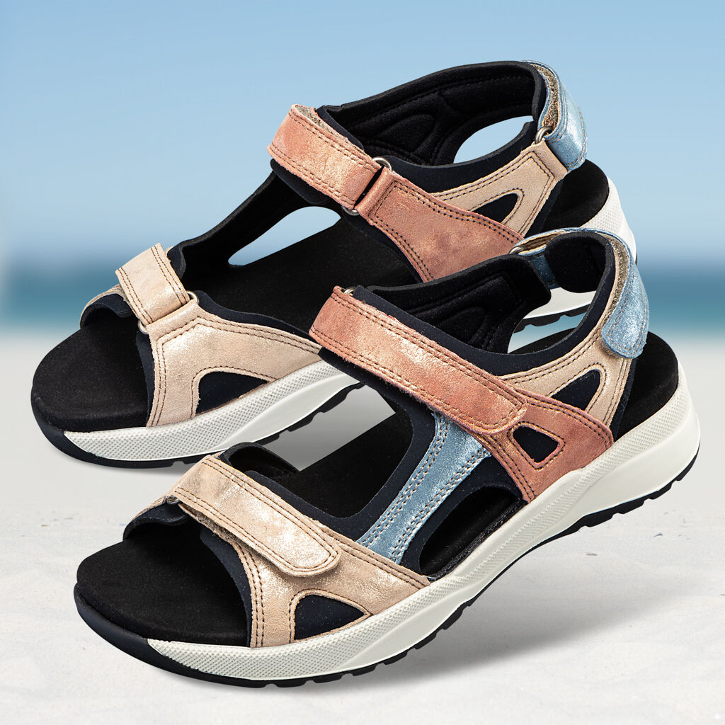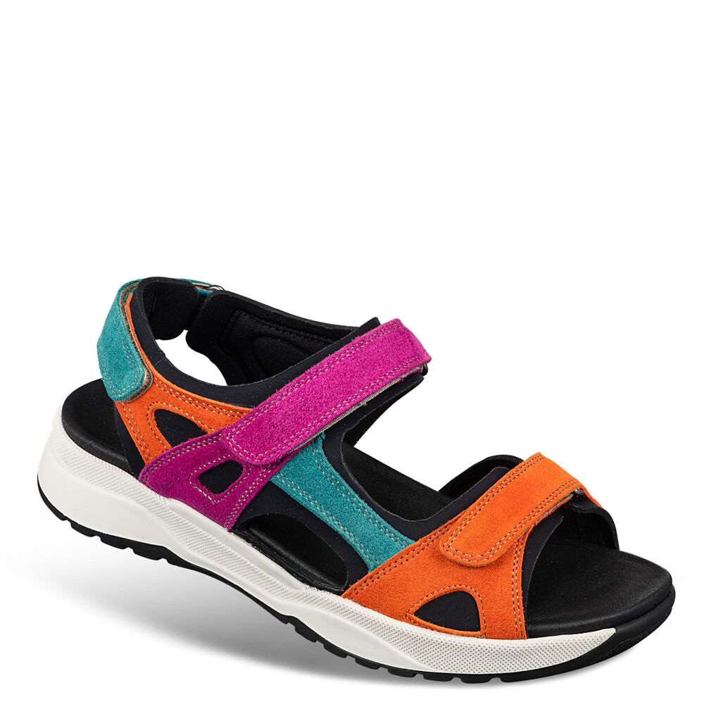 Pro odpruženou chůzi a flexibilní pocit - mladistvé sandály z vysoce kvalitní usně v kombinaci s podšívkou a polstrovanými okraji z měkkého neoprenu a třemi pásky na suchý zip pro perfektní stabilitu. Optimálně odpružený došlap na podrážce SoftMove s vyjímatelnou stélkou z lehkého korku.
