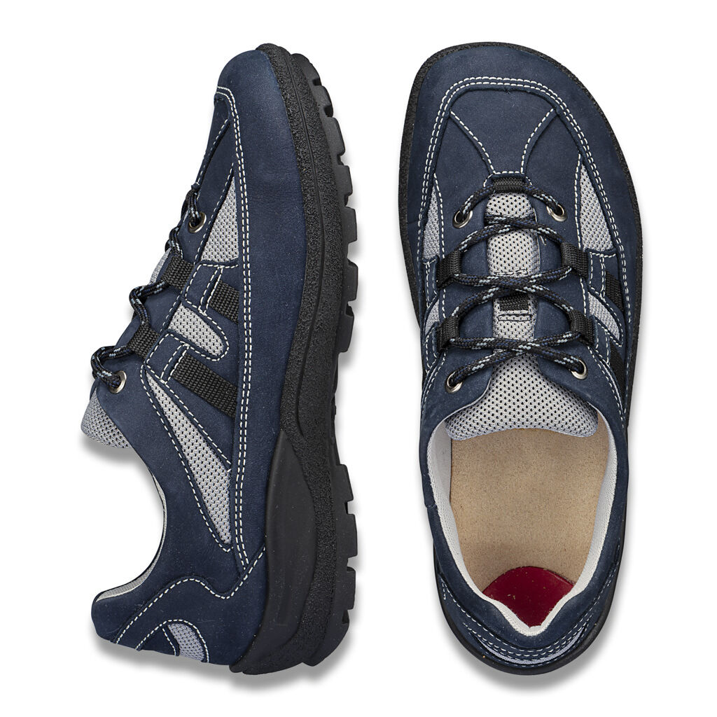 Flexibilní a měkce polstrovaná: udržitelná obuv z ekologické usně v kombinaci se sportovním textilem a podšívkou z mikrovlákna Dry Clim pro suché klima. Lehká podrážka FitProfil s vyjímatelnou stélkou, kterou lze snadno vyměnit za vlastní vložky.