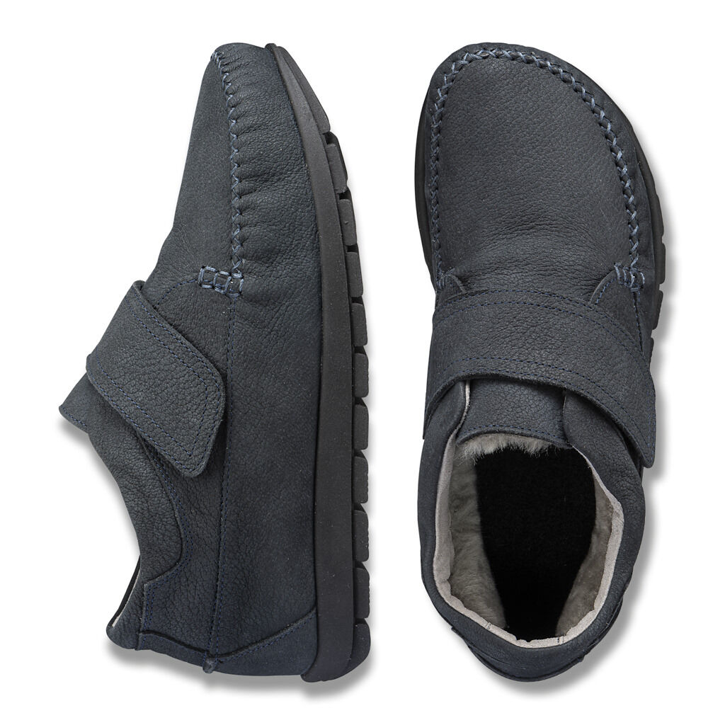 Ručně šité kožené mokasíny s podšívkou z beránčí kožešiny, variabilně nastavitelné díky suchému zipu. Lehká podrážka Rollover se zateplenou vyměnitelnou stélkou.