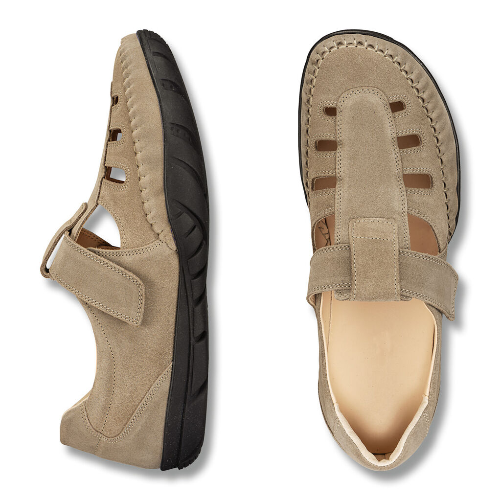 Sportovní lehké mokasíny z hebké velurové usně si hned zamilujete na boso! Ručně šité dekorativním, flexibilním mokasínovým stehem. Šetrné díky polstrovaným okrajům a provlečenému pásku na suchý zip na nártu. Měkká kožená podšívka a stélka potažená měkkou usní. Elastické podrážky Softprofil z lehkého TPU.