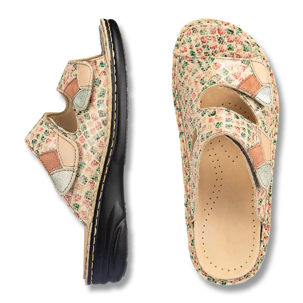 Pásky na suchý zip lze zcela otevřít a jemně přizpůsobit tvaru chodidla. Stélku lze přiobjednat, resp. vyměnit za vlastní vložky.