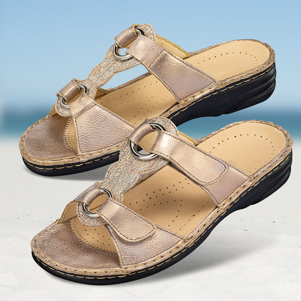 Láska na první pohled! Rafinovaný design se středovým páskem na nártu opticky zeštíhluje, praktické pásky na suchý zip poskytují chodidlu optimální stabilitu a flexibilní oporu. Náročná kvalita z měkké usně napa s jemnou koženou podšívkou šetrnou k pokožce. Flexibilní opánková podrážka s vyjímatelnou stélkou, kterou lze snadno vyměnit za vlastní vložky.